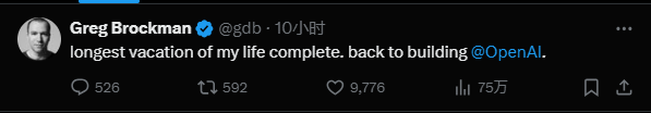 “我人生中最长的假期结束了,已经回归@OpenAI。”