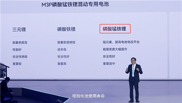 据奇瑞介绍,瑶光C-DM配备的是M3P磷酸锰铁锂混动专用电池,相较于磷酸铁锂或三元锂电池,锰元素提高了电池电压平台,且其能量密度大幅提升,且安全性更好、重量适中。