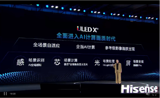 新浪科技讯 3月15日上午消息,2024年中国家电及消费电子博览会期间,海信宣布旗下ULEDX场景画质技术平台全面进入AI计算画质时代,将作为海信的专有画质技术品牌,集场景感知、场景计算、场景处理以及场景呈现于一体,通过一体化的基础架构,实现场景和内容的全链路升级,为用户带来全场景计算自适应的参考级影像。