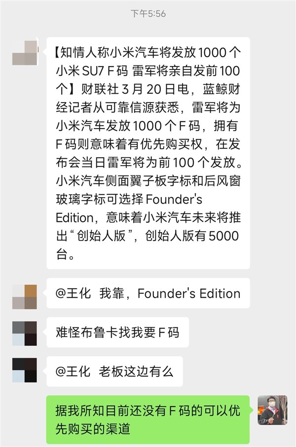 然而,今天下午,小米集团王化作出回应称,小米SU7目前并没有“F码”或类似的优先购买渠道;截至目前,官方只开放了登记品鉴。