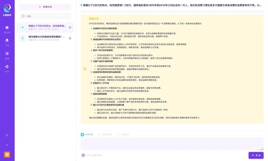 例:我们尝试把Z世代奢侈品消费的研究报告作为输入,让Kimi提取关键信息并且做出总结(下图一),再让小脉助手根据这个结果生成营销策略(下图二)。
