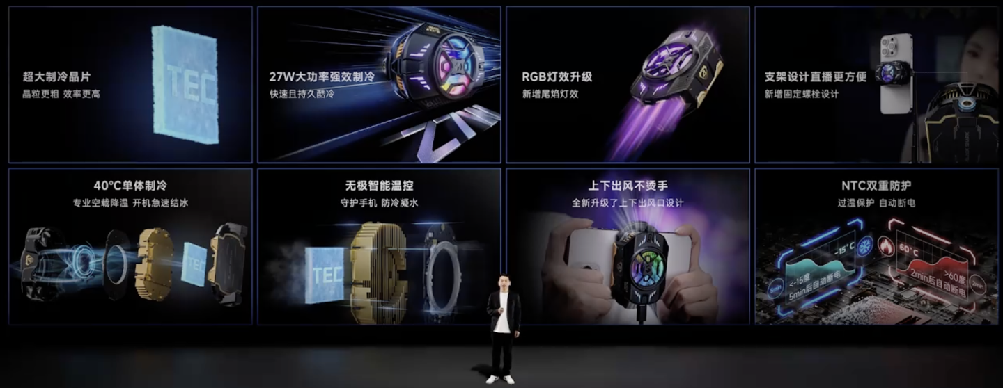 IT之家 3 月 25 日消息,在目前正在进行的黑鲨外设 2024 新品黑鲨新品发布会中,黑鲨冰封制冷背夹?4 / Pro 磁吸版正式登场,另有系列散热器的“三体联名版”,IT之家整理价格信息如下: