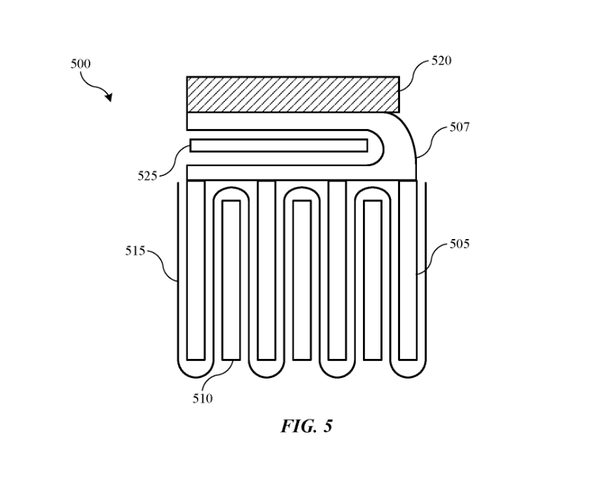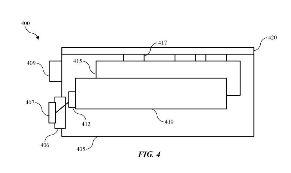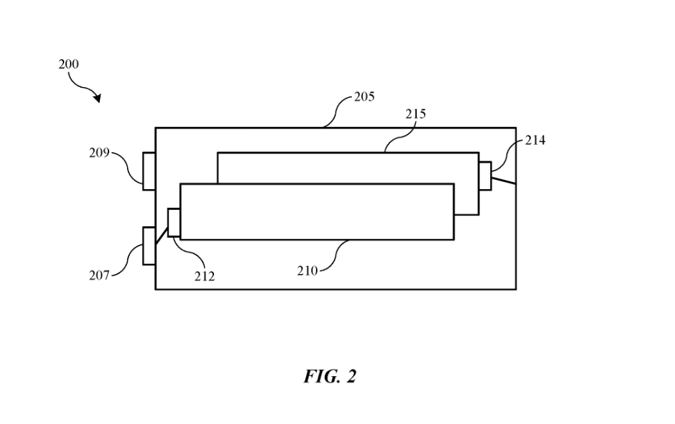 苹果在专利中描述:“其中一组连接器可以从表面沿第一方向延伸的接片,而另一组连接器可以包含与第一方向基本垂直的接片,这不仅可以解决空间限制的问题,还可以改善整个电池的电阻,从而提高电池的效率”。